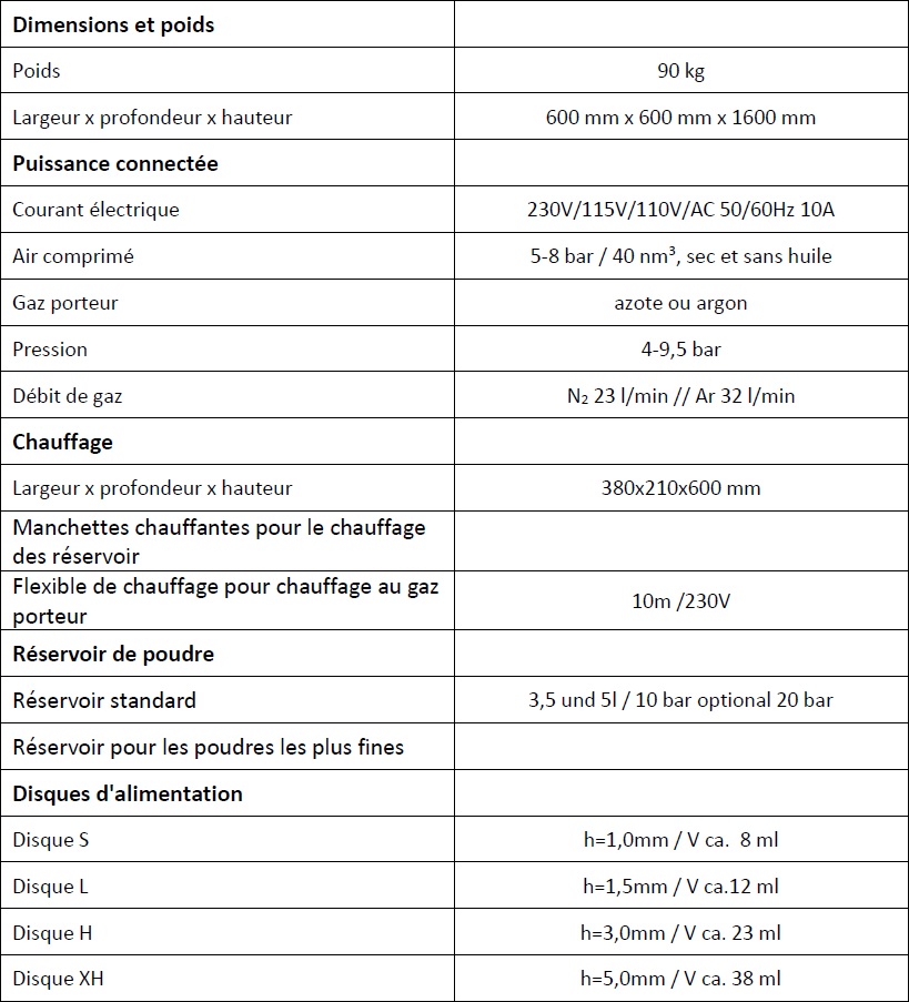 Le nouveau réservoir de poudre pour les poudres submicroniques <<3μm est un point fort particulier. Il permet un transport fonctionnel et sec des poudres submicroniques, en alternative à la pulvérisation en suspension. Cette extension de la gamme de poudres utilisables dans le domaine des poudres submicroniques est une étape importante dans la technologie de projection thermique.